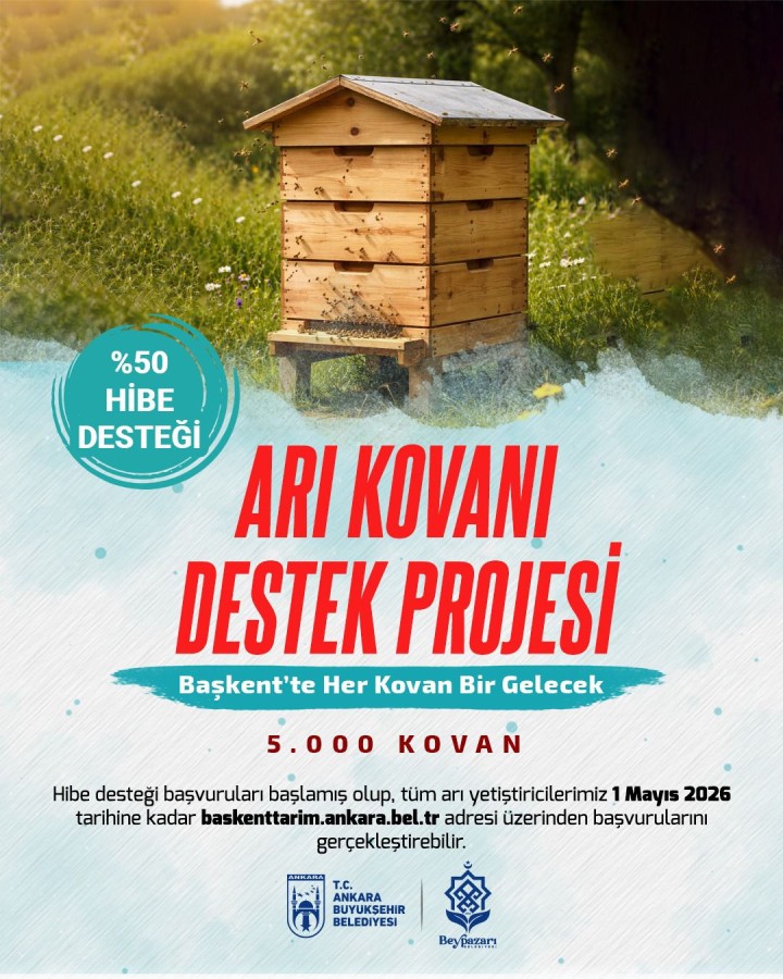 Arıcılıkla uğraşan üreticilerin üretimini artırmayı hedefleyen proje ile kırsal kalkınmaya katkı sunulması amaçlanıyor. Başvurular 1 Mayıs 2026’ya kadar baskenttarim.ankara.bel.tr adresinden yapılabilecek.